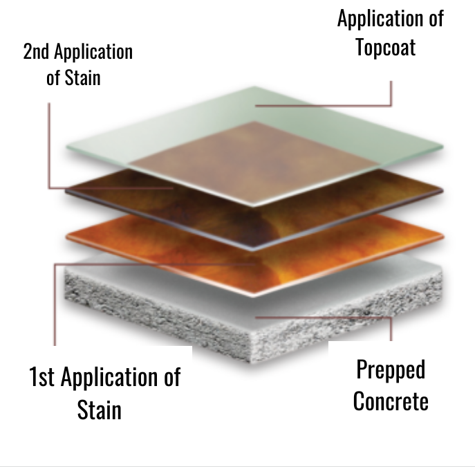 Concrete staining is a technique that specializes in the application of a stain to concrete surfaces. Concrete stain is a type of coloring agent that penetrates the pores of the concrete, creating a durable and long lasting color that can be used to enhance the appearance and natural aesthetics of the concrete. With a variety of colors to choose from, our team will work with you to help bring your vision to life.